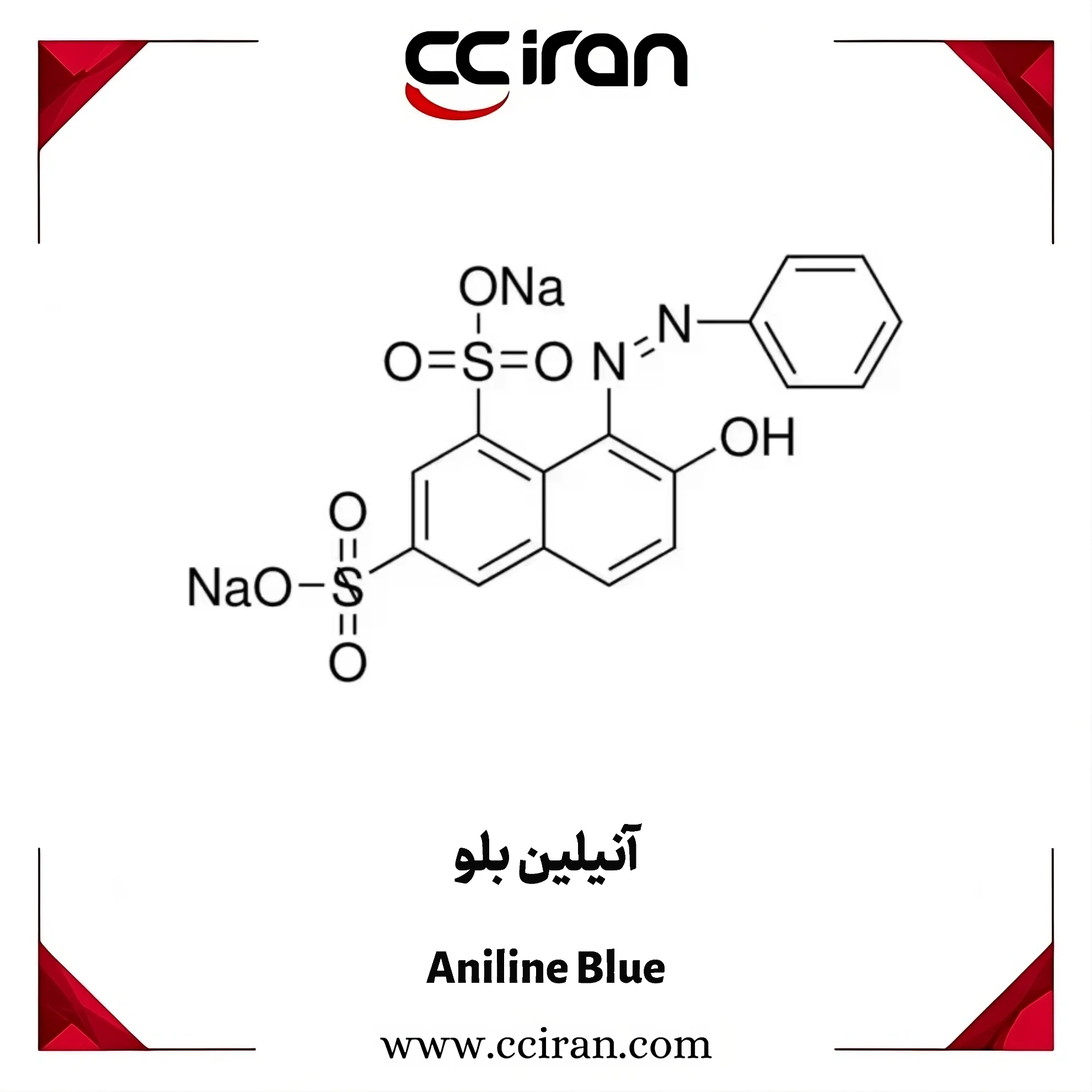 آنیلین بلو که با نامهای "بلو آنیلین" (Aniline Blue)، "تری فنیل متان بلو" (Triphenylmethane Blue) و "محلول رنگآمیزی آنیلین بلو" (Aniline Blue Staining Solution) نیز شناخته میشود، یک رنگ آزمایشگاهی و صنعتی است که در رنگآمیزی زیستی، بررسی بافتهای گیاهی و جانوری، رنگآمیزی بافتشناسی، و صنایع نساجی و جوهرسازی استفاده میشود. این رنگ عمدتاً برای رنگآمیزی کلاژن، سلولهای گیاهی، گلیکوپروتئینها، و برخی از انواع فیبرهای پروتئینی استفاده میشود. آنیلین بلو در آزمایشگاههای میکروسکوپی برای بررسی ساختارهای سلولی، در صنایع رنگرزی برای تولید پارچههای آبی و در چاپ جوهر به عنوان رنگدانه مورد استفاده قرار میگیرد. این ترکیب در آب و الکل محلول است و با روشهای مختلفی در رنگآمیزی زیستی و صنعتی کاربرد دارد.