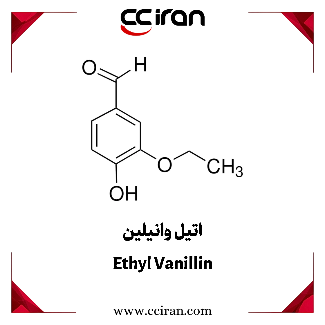 اتیل وانیلین (Ethyl Vanillin) با فرمول شیمیایی C9H10O3 و CAS number) 121-32-4) یک ترکیب شیمیایی معطر است که بهطور گسترده در صنایع غذایی، عطرسازی، و داروسازی بهعنوان طعمدهنده و رایحهدهنده استفاده میشود. این ترکیب یک مشتق مصنوعی از وانیلین است و رایحهای قویتر و ماندگارتر از وانیلین طبیعی دارد. اتیل وانیلین از نظر ساختاری مشابه وانیلین است، اما گروههای اتیل موجود در ساختار آن باعث تقویت ویژگیهای عطری آن شدهاند و باعث شده رایحهای 3 تا 4 برابر قویتر از وانیلین طبیعی داشته باشد. این ماده به شکل پودر کریستالی سفید یا کمی زرد است که بهخوبی در الکل، اتر و آب گرم حل میشود. از دیگر مزایای آن میتوان گفت به دلیل نیاز به مقدار کمتر، هزینه کلی تولید کاهش مییابد و مقاومت بیشتری در برابر گرما و واکنشهای شیمیایی نسبت به وانیلین طبیعی دارد. اتیل وانیلین بهطور کلی برای مصرف انسانی ایمن شناخته میشود و توسط نهادهای نظارتی مانند FDA تأیید شده است. اما مانند همه افزودنیهای غذایی، مصرف آن باید در محدوده تعیینشده باقی بماند.