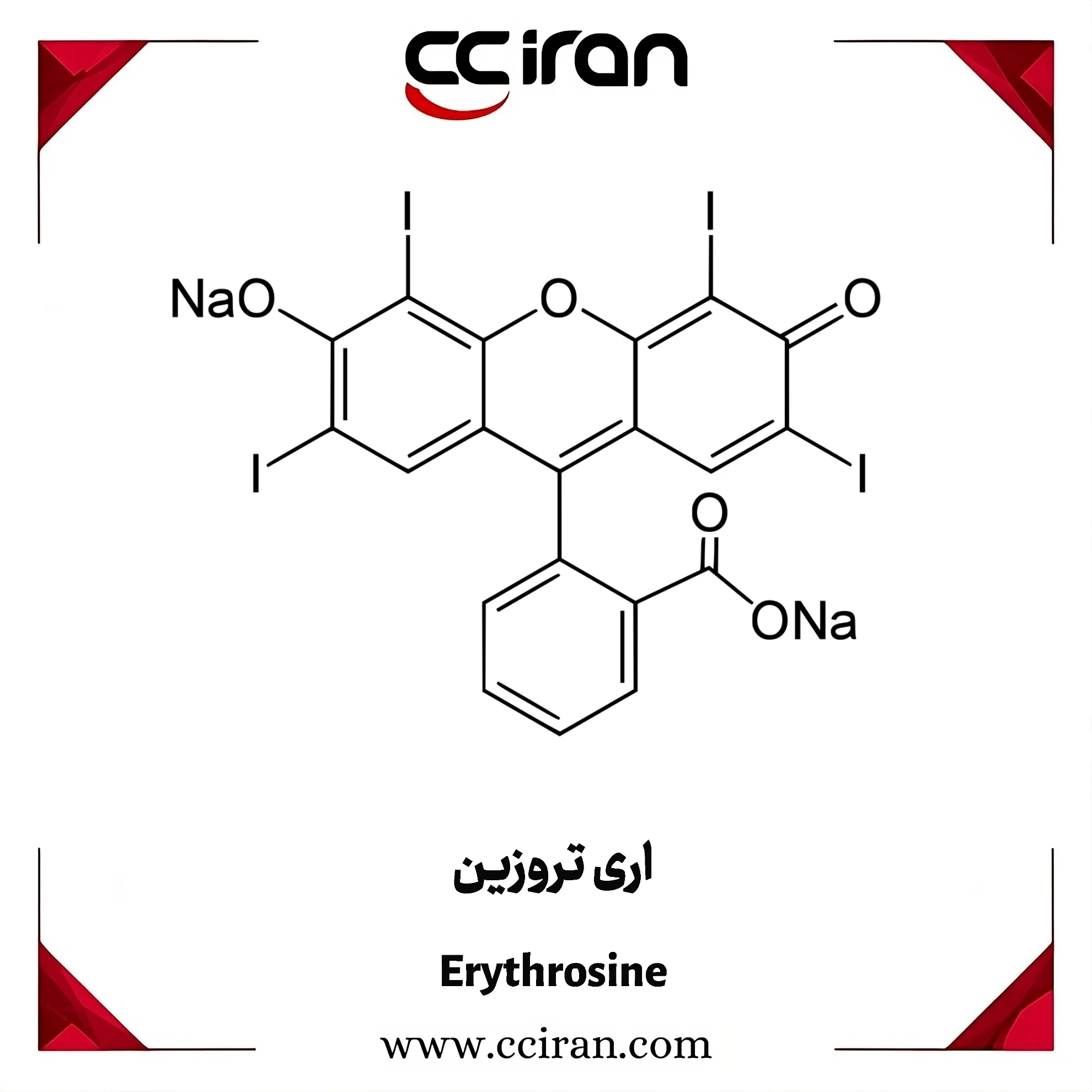 اری تروزین که با نامهای "اریترُزین" (Erythrosine)، "رنگ خوراکی قرمز شماره 3" (Red 3)، "تتراکلرو-تترا یدو فلورسئین سدیم" (Tetraiodofluorescein Sodium)، و "E127" نیز شناخته میشود، یک رنگ مصنوعی قرمز رنگ از خانواده فلورسئینها است که در صنایع غذایی، داروسازی، بیولوژی، و رنگآمیزی آزمایشگاهی کاربرد دارد. این ترکیب یک رنگ قرمز مایل به صورتی است که عمدتاً در مواد غذایی مانند شیرینیجات، نوشیدنیها، دسرها و برخی داروها استفاده میشود. اری تروزین در آزمایشگاههای زیستشناسی و بافتشناسی نیز برای رنگآمیزی نمونههای بافتی به کار میرود و میتواند برخی ساختارهای سلولی را بهخوبی مشخص کند. به دلیل داشتن اتمهای ید (Iodine)، این ترکیب دارای خواص فلورسنت بوده و در برخی روشهای تصویربرداری پزشکی و تشخیصهای آزمایشگاهی نیز مورد استفاده قرار میگیرد. اری تروزین در آب بهخوبی محلول است اما در الکل حلالیت کمتری دارد و در محیطهای قلیایی، رنگ آن تغییر میکند.